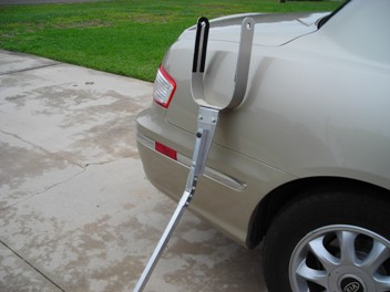 Attached are two pictures of the tow bar I made for my Zodiac601XL. The axel on the tri-gear sticks out on both sides of the wheel pants and the tow bar fits onto these two axel ends by spring action. The part that fits onto the axel ends must be at least 1/8th inch thick and of spring aluminum. The black strips you see on the inside are the soft side of velcro to protect the paint on the wheel pants. I do not need a tow bar to pull the aircraft out of the hanger but I do need it to move the aircraft backwards into the hanger and this one works very well. I will furnish more detailed information as to dementions, where to get parts, etc for anyone who is interested.