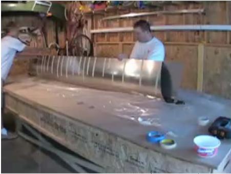 around. A piece of pipe longer than the skin is placed exactly at the