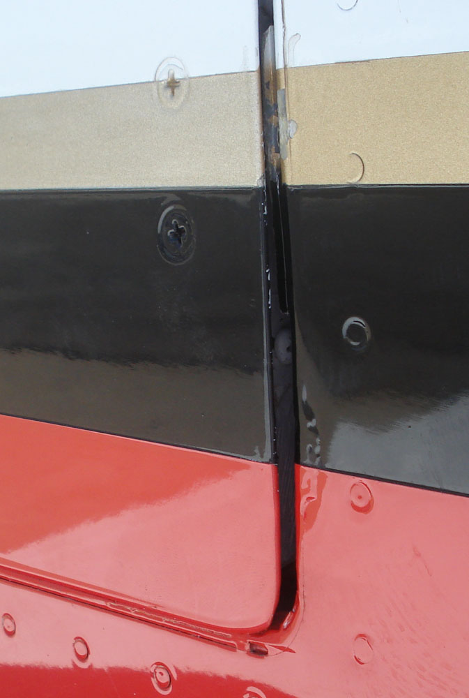 > a row, some were offset high and low. The baggage door was not aligned