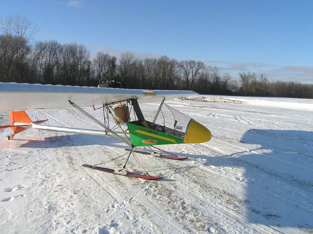 I will get a close up picture of the wooden block that is strapped to the tailwheel rod with hose clamps. It has two purposes; keeps ice from hitting the tailwheel, and it offsets the weight and balance to account for the additional clothing I wear during the winter. In 1990, the tailwheel weld broke due to the stress of ice and snow hitting it. This is what I came up with for a solution. There is no need for a tailwheel ski as it glides over the snow because it's so light.