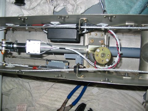 Whoops, my mistake, I thought you could see the POS-12 in those posted pictures. Here are some photos of my POS-12 installation. I attached it to the inside of the tunnel near the flap actuator using blind rivets. I made a connection using model airplane a threaded pushrod with a z-bend at one end an a brass clevis at the other. I had to measure carefully/experiment a bit to select the appropriate attachment points and mounting angle to get the right throw and to avoid binding.