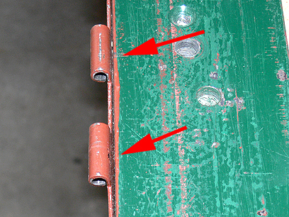 After looking closely at my Dave's brake last night and removing the hinge pin, I discovered what is happening is that the rivets aren't pulling at all. The hinge rolls are bending and coming away from the angle iron base plate. See photo.