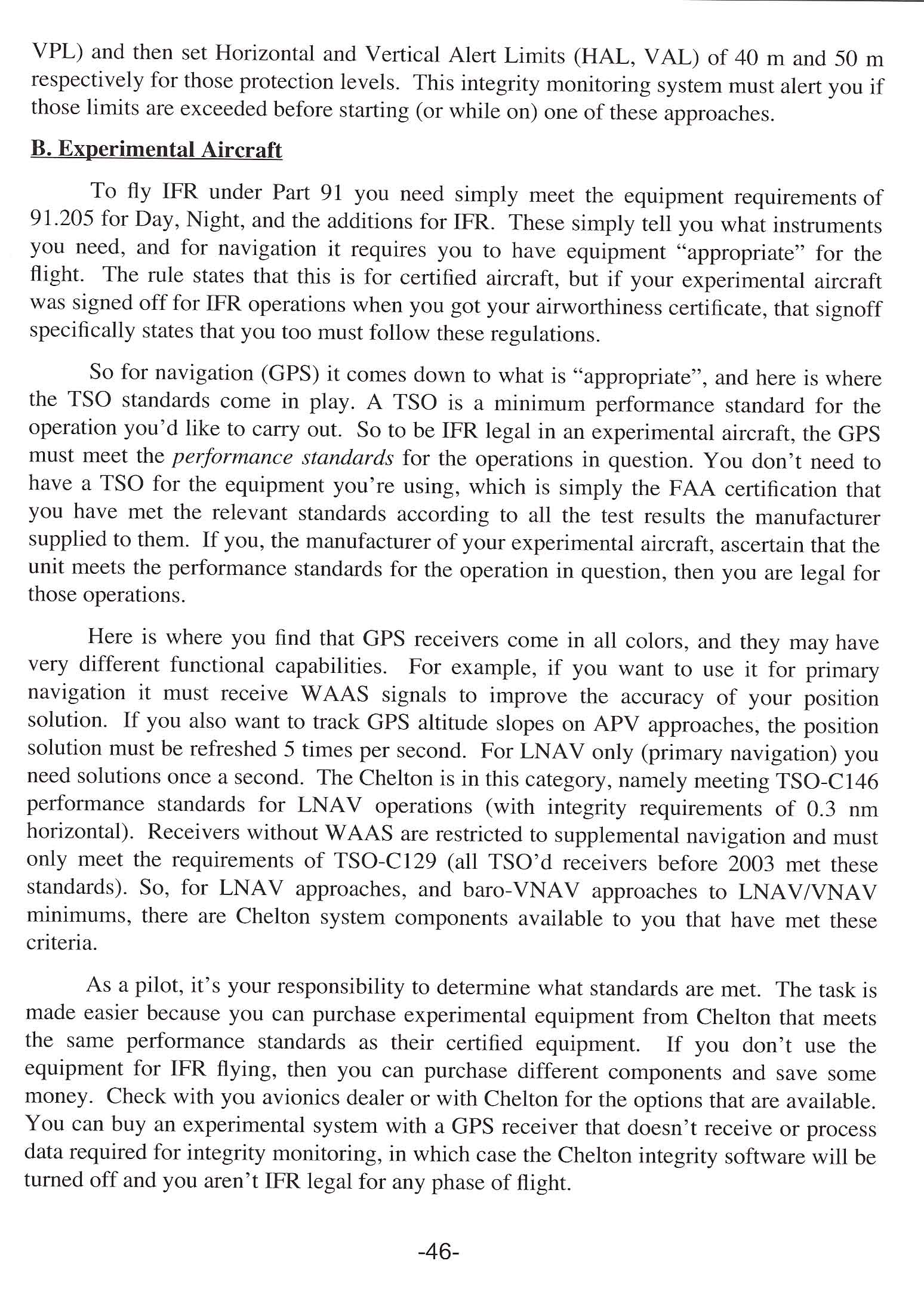 Subject: IFR GPS From: linn Walters (pitts_pilot(at)bellsouth.net ([email]pitts_pilot(at)bellsouth.net?subject=Re:%20IFR%20GPS&replyto=4856BFD0.1040706(at)bellsouth.net[/email])) Date: [b]Mon Jun 16 - 12:36 PM[/b] | Quote: | | Quote: | I posed the question of what's needed for LEGAL IFR operation, and this