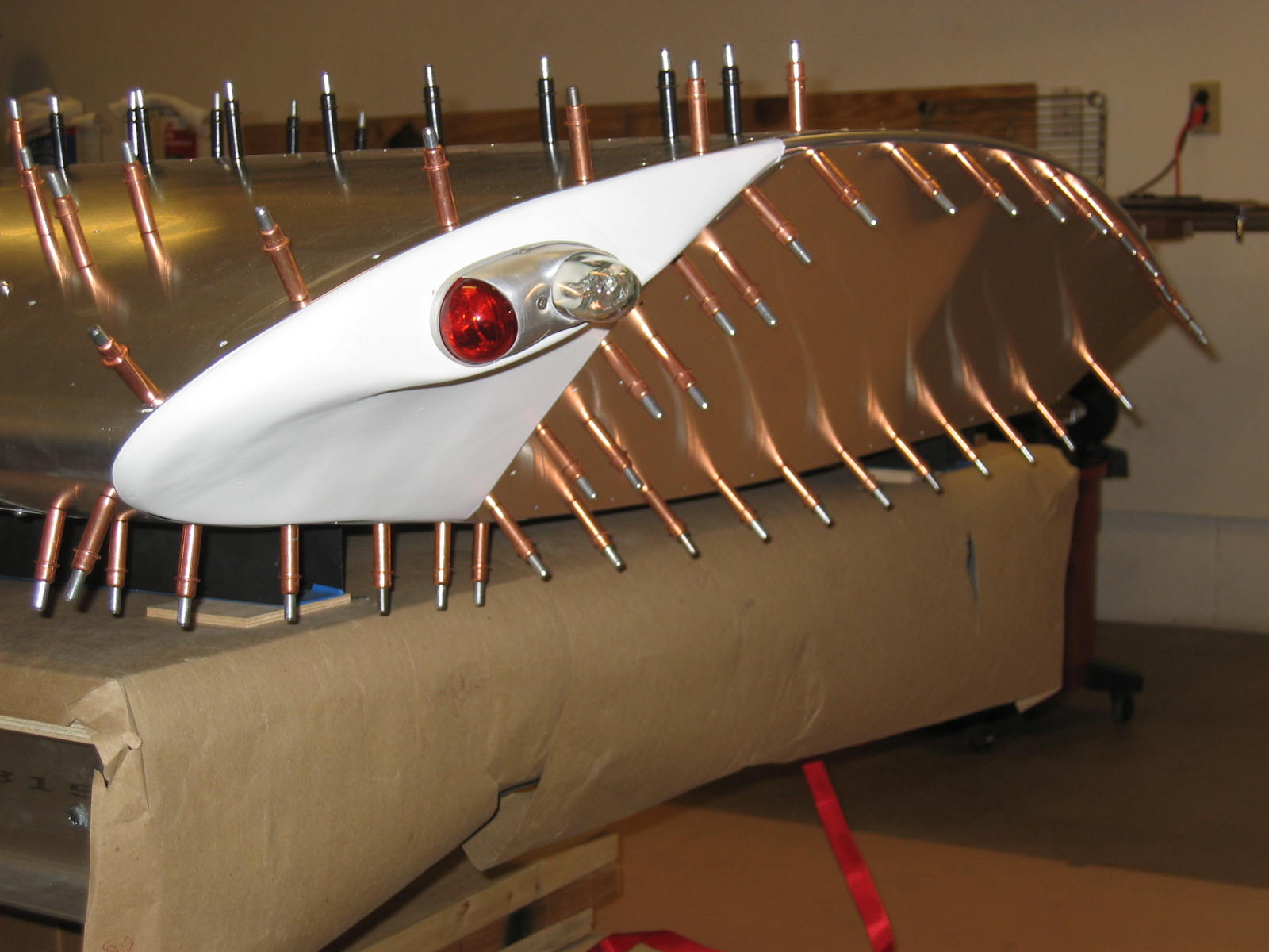 I'm told it sticks well to Aluminum also, but I wanted to keep it simple, in case access to strobe, or landing lights was required. Again, I first heat gunned them close to shape, then gooped on superfil, several layers, then sanded and primed.