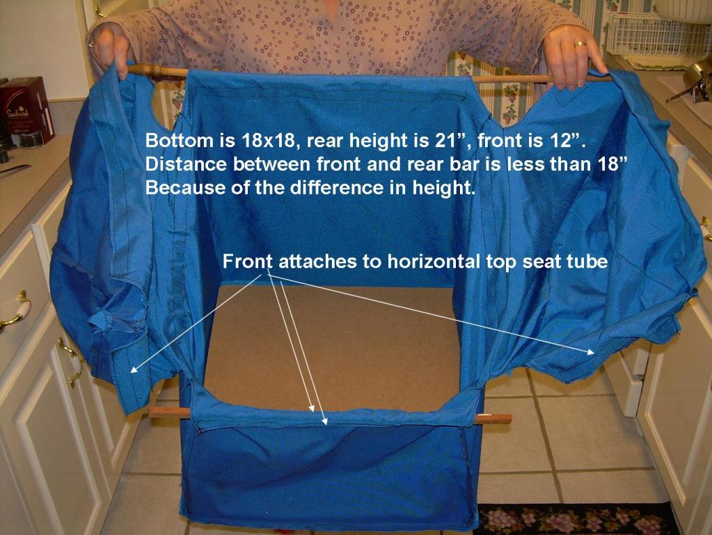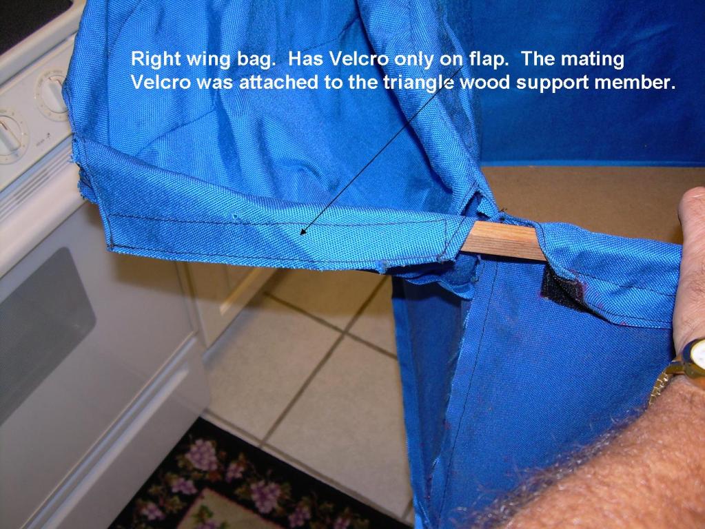 I want to sell the luggage/cargo bag that was originally installed in my Vixen (Series 5). It is blue in color and is in excellent condition. I replaced it with the “large” cargo bag a few months ago. This bag mounts (with Velcro) to the top seat assembly tube and to the next horizontal support member that is about 14’ aft of that. The floor of the bag is larger than the top. It is 18”x18” and is made of 1/8” Masonite. It also has the triangle shaped wings on each side to create the smaller size side pockets. All Velcro is in excellent condition and there are no known defects in the bag.