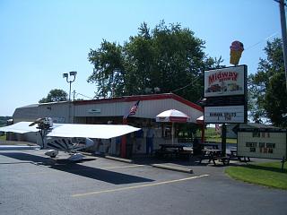 They have a 350' square field behind the place with an open approach from the east.They have car shows there.You have to taxi up a slope then across some gravel to get to the pavement,but yes you can. A Savannah, and a Chinook were with me. ---