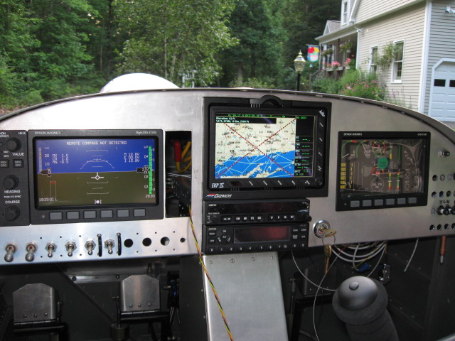 I went with the Garmin SL30 for Nav/Com and a Garmin GTX327 for the transponder. My GPS is an Avmap EKP IV. The hole in the panel is for the Dynon AP76 autopilot module. The Dynon equipment in the picture is an HS34, Flightdeck D180, and EFIS D100.