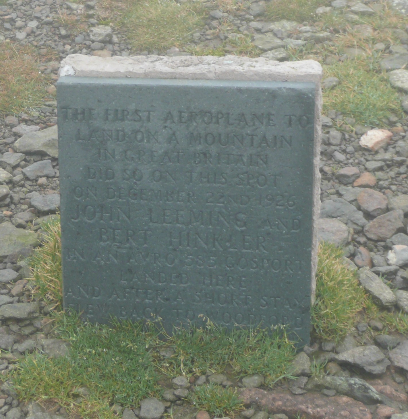 "Helvellyn's summit is fairly flat, and in 1926 Australian aviation pioneer Bert Hinkler (with John Leeming) landed an Avro 585 here. Hinkler gained worldwide fame two years later when he became the first man to fly solo from Britain to Australia, an event largely eclipsed in the public memory when Britain's Amy Johnson repeated the feat in 1930 thus becoming the first woman to do so."
