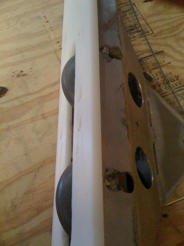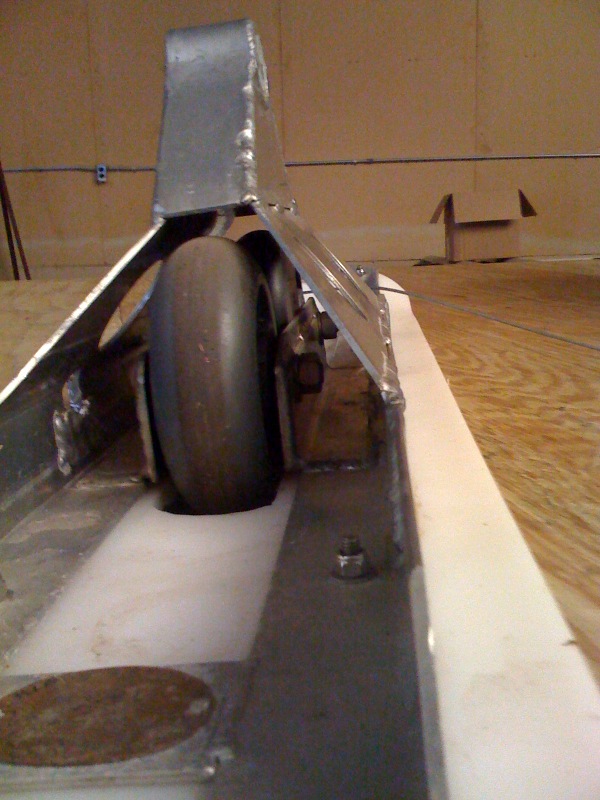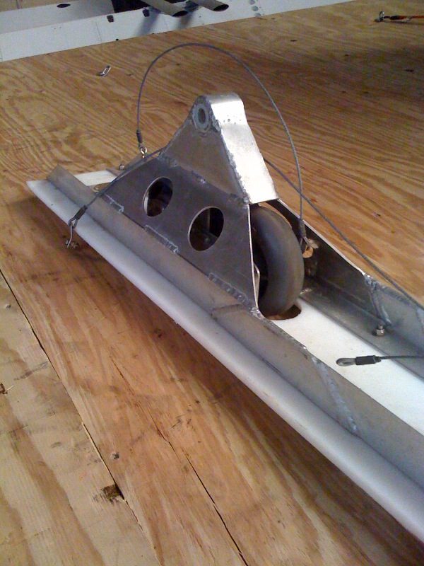 to one side of a piece of aluminum angle that is the ski portion of