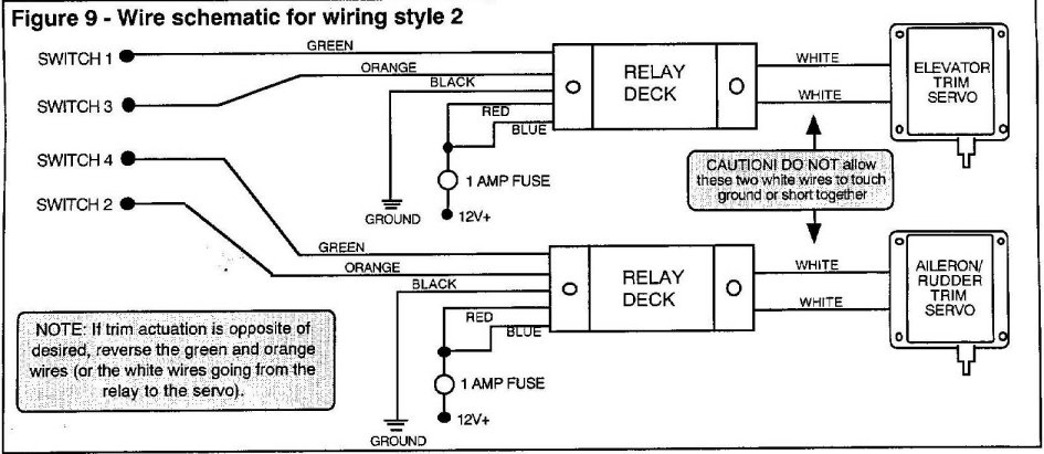 RAC servos for aileron and elevator trim? The RAC "Wire schematic" is
