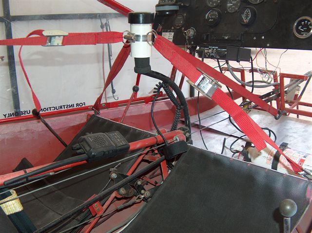 Here are some pics of my little invention - "The Spider." Best control lock I've seen yet. When in place and tightened, it feels like the control stick is welded in place. The MV guys liked it and some copied it. Someone modified the design but the modification didn't work as well as the original (heh, heh, heh - sorry, I couldn't resist.) I works a lot better than a seat belt and just takes a minute more to install. If you make one, a key point is to cut a groove in the PVC at each place the rings go, otherwise the rings will tend to flop over. If you make both the fore and aft straps adjustable, then you can set the elevator where you want it, up or down. Mine isn't adjustable so the elevator is locked in neutral. One of these days I'll change forward strap to an adjustable one.