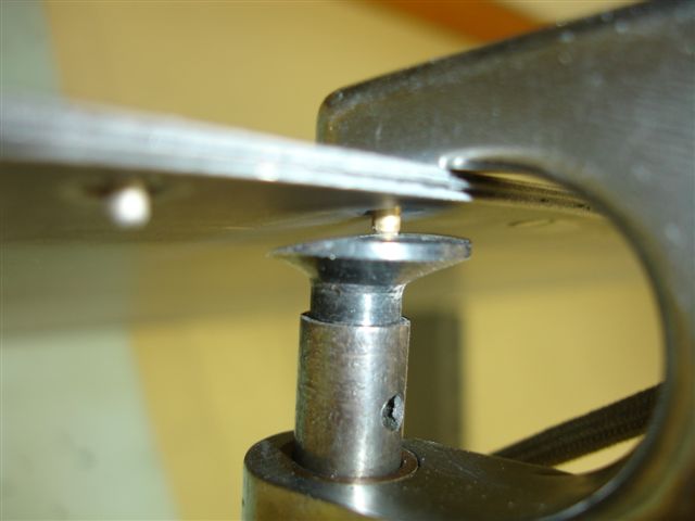 If you don't have a wide rivet set that you can grind down, let me know and I'll see if my nephew Dave can make some sets up. It's important to have a wide set because on your intial squeeze, the rivet meets the flat part of the set. The final squeeze, the angled part of the set meets the rivet. I used a small Tatco flat C-frame for this. You can probably use another type set but need a flat on one side and the angle set on the other.
