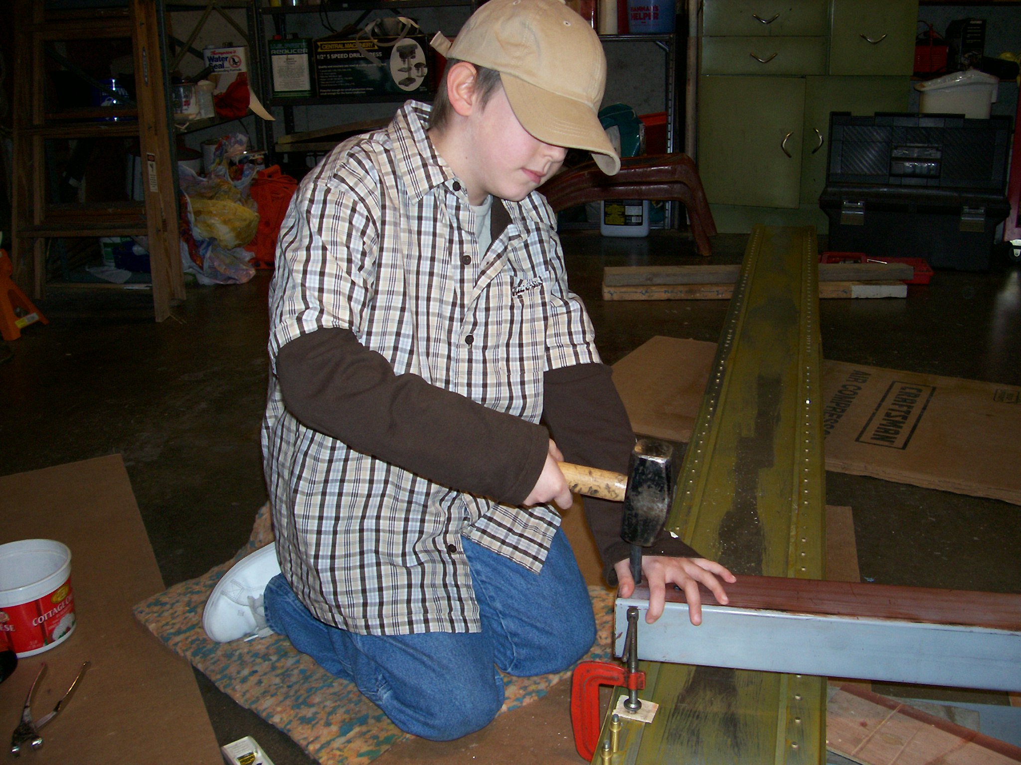 A while back someone asked for a picture of a Spar being scratch built. Here's on my Grandson is working on:)