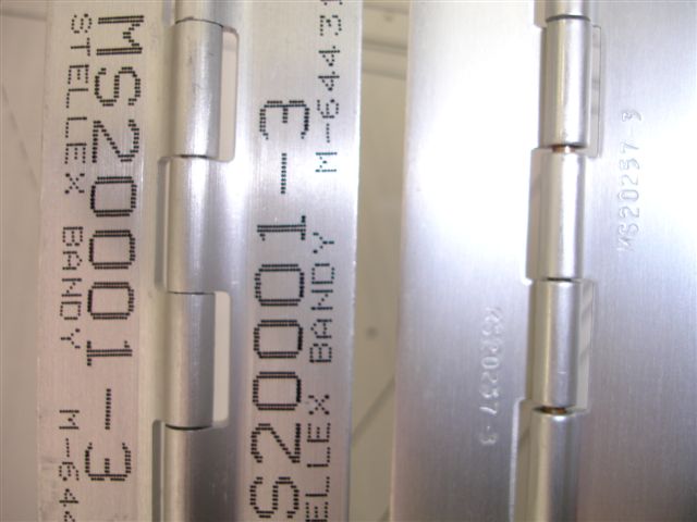 If you want less sag on your baggage door, use the extruded piano hinge instead of the one supplied in the kit. The extruded version is 4 times the cost but is much, much stronger! The supplied version in the kit has the eyelets rolled. As you can see from the pics, the extrusion has the eyelets closed.