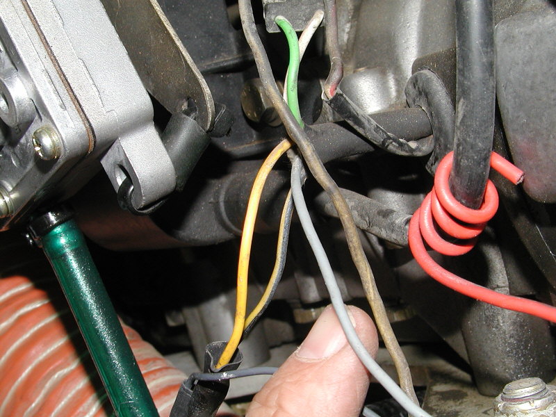 The thick pink wire in your picture looks like a good candidate for the pickup application. Does it go to the "Tiny Tach?"