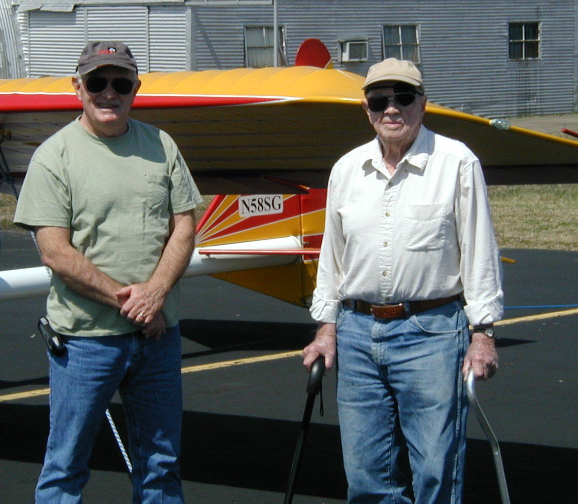 Reading Ray's e-mail contributions to the list over the years made it evident that he was a very interesting man. This past spring I flew over to meet him after e-mailing him to see if he would be around the airport. As I taxied off the runway, at Shelbyville, a voice came on the radio "58 sierra golf, are you here to see Ray Anderson?". Ah yes. "This is his son Roger and I will be back in a few minutes". Roger was just departing for a trip around the pattern in his plane. Needless to say my visit was great and will be remembered for many years. I have attached a couple of photos.