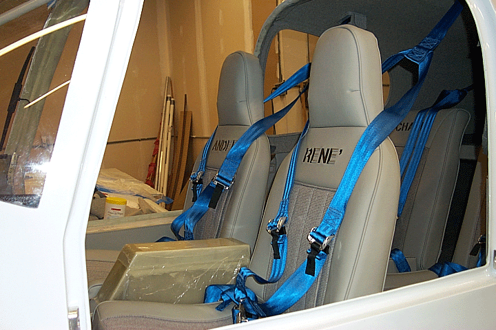 Here are some pictures of my seats and belts………starting to look like a flying machine. I plan on finishing the rest of the interior after I am flying.