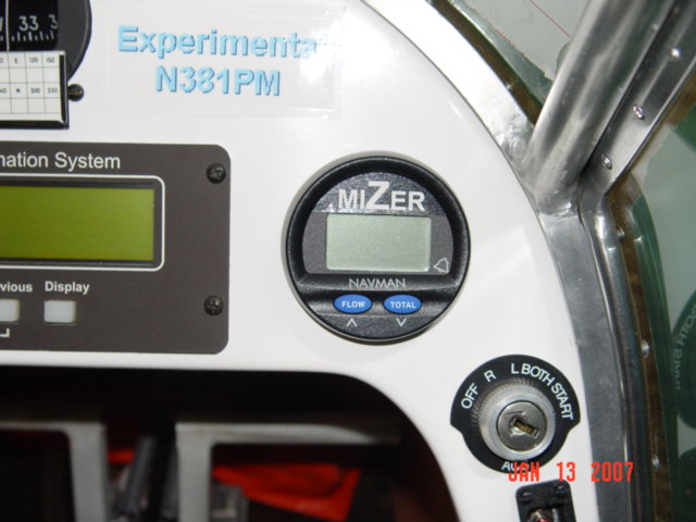 P.S. A fuel flow meter, in my humble opinion, while not a critical instrument like an air speed indicator or CHT gauge, it ranks right up there with the 2nd layer of important instruments. I had a situation with my RANS that was very subtle, once caused an engine-out on climb-out (no resulting damage) and would have been impossible to figure out had I not had the Navman in place. By seeing that, only in high flow situations, my fuel flow wasn't what it had been and should be, I was able to narrow down the problem to my electric fuel pump. Turned out one of the check valve balls in it got stuck and was restricting the flow, but during most situations, it wasn't noticeable. Only once, during a full-throttle climb-out, did I use up more fuel than could be supplied, and thus the engine-out. There were a few times when I was flying straight-and-level at full throttle that it seems the engine wasn't quite getting ample fuel (a microsecond hesitation, from time to time), and the Navman helped me figure it out. I highly recommend you put one in your UL/LSA, if you at all can.