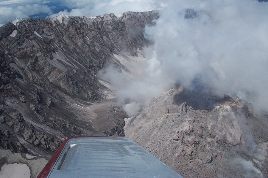 | Looking down the crater of Mount St. Helens. Taken before the TFR went into effect. |