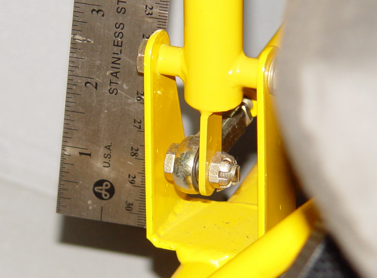 First problem is in the linkage design, Kolbs have WAY TO MUCH travel built into the ailerons. My Kolb MK III Xtra had 40 degrees of up aileron which is as much or more than a highly aerobatic Extra 300. This is a design error by Kolb and needs to be fixed... I found even than in crosswinds etc, I never used anywhere near full stick. Secondly, anything past 25 or 30 degrees travel turns into drag, and does not give you more control. The easy way to fix this on a MK III is to shorten where the aileron rods attach at the rear of the fuselage as seen in the attached picture, but this brings other problems. First, it increases the angle of the aileron control rods to the point where they are pushing out as much as they are pushing the aileron up and down, so some of what you gained is also wasted. Secondly, it increases the aileron differential to an unreasonable amount. In other words, you get a lot of up, but very little down aileron the more you move these rods in.. Not good and I did not use this method to lighten my control forces. My solution was to drill a hole in the bottom of the stick, and shorten the aileron attach point to the stick, resulting in less throw and less force without all the disadvantages of the other methods. In the picture, I just drilled another hole above hole where the bolt that attaches to the stick, moving the attachment point up. This picture was before the modification, you can clearly see how much extra room there is to drill a higher hole.
