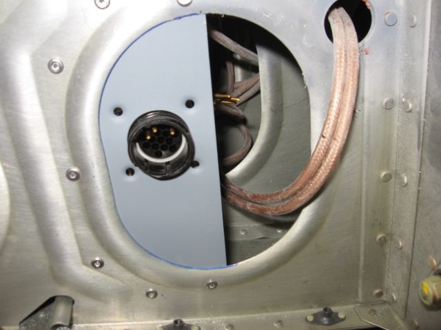That is exactly like I did. About 4 – 6 inches behind the spare I have a hole drilled for a 14 pin CPC connector for general wires, then I have a 4 pin CPC for the Strobe Wire (Ensure to connect the shield to one of the pins) and then I have the bulkhead BNC for my NAV/GS Antenna. My Marker Beacon Ant is in the Tail cone.