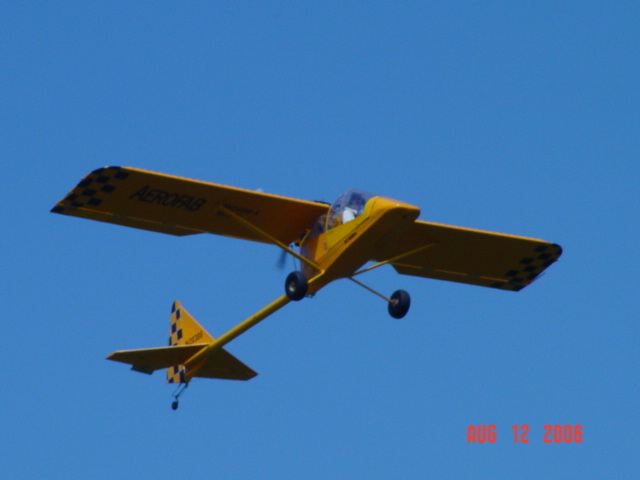 Mark German let me take the controls of his Kolbra last night from the back seat. We went around the pattern a few times and shot some takeoffs and landings. After flying my Original (very light) Firestar for the last 20 years, there is quite a difference between them. Everything is faster including the landings. I thoroughly enjoyed the plane.