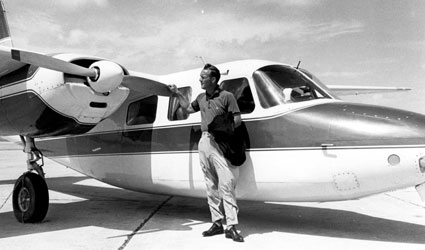 First one was a Model 500, s/n 685, N6285B. This he bought second-hand from Youngwood Metals Co Inc., of Youngwood, Pennsylvania on September 6th 1961 and on November 27th 1963 it was traded in to the Aero Commander Division, of Rockwell-Standard Corp for his next one, a Model 560F. There's a photo somewhere on "the net" of Arnie flying the 500 in formation with a few of the Blue Angels team. It is now in the Bahamas, as C6-BFS, with Abaco Air Ltd., of Marsh Harbour, Abaco. I've told them about its pedigree!