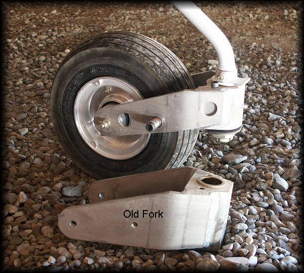 Yes, I am aware of that. Try to visualize the 70 degree bend in the lower leg. The nut area is no longer at the bottom, the front corner of the fork is. The new fork at that area has been recessed compare to the old one, although my friend ground off a quarter inch of it during taxi. I was not present. It was a miracle the prop did not strike, must have been close. Weather was extremely bad, you and I would not have greased the landing that day either. This reminds me, I sometimes forget to consider unusual weather when we discuss these issues. Am I alone? PS: I would have been disappointed if there were no questions on my posting. Thanks