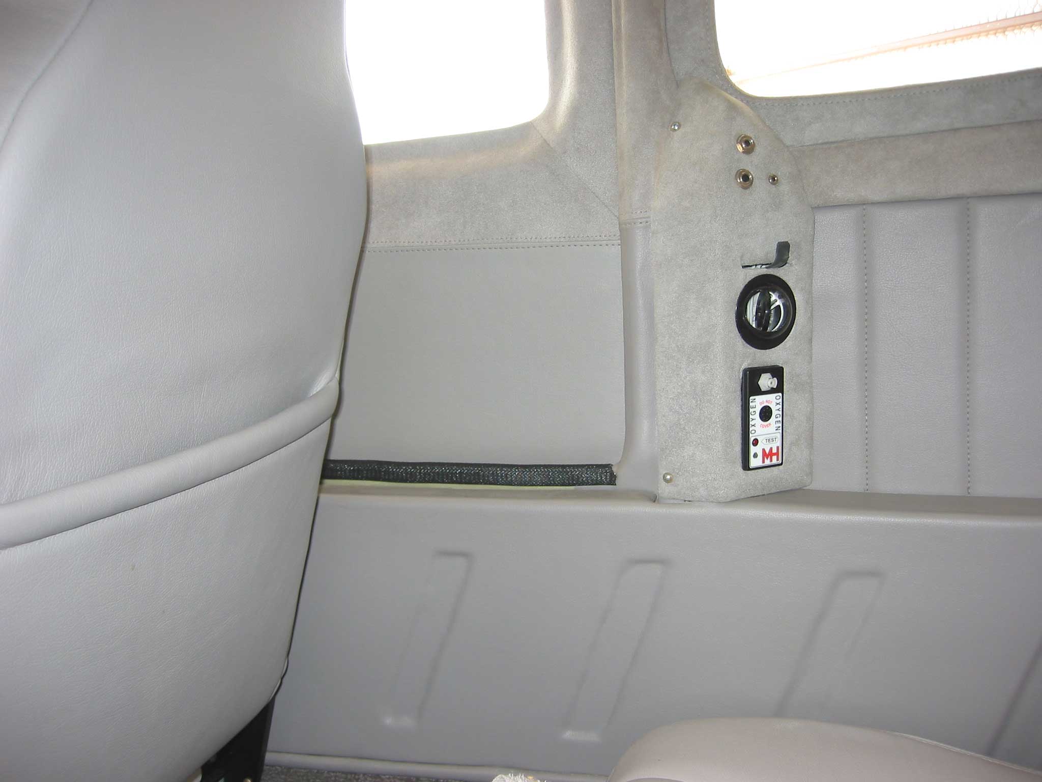 On the arm rest just aft of the rear air vent that are on the fuse side. Those arm rests are a little too small to begin with and they are more like a elbow rest.