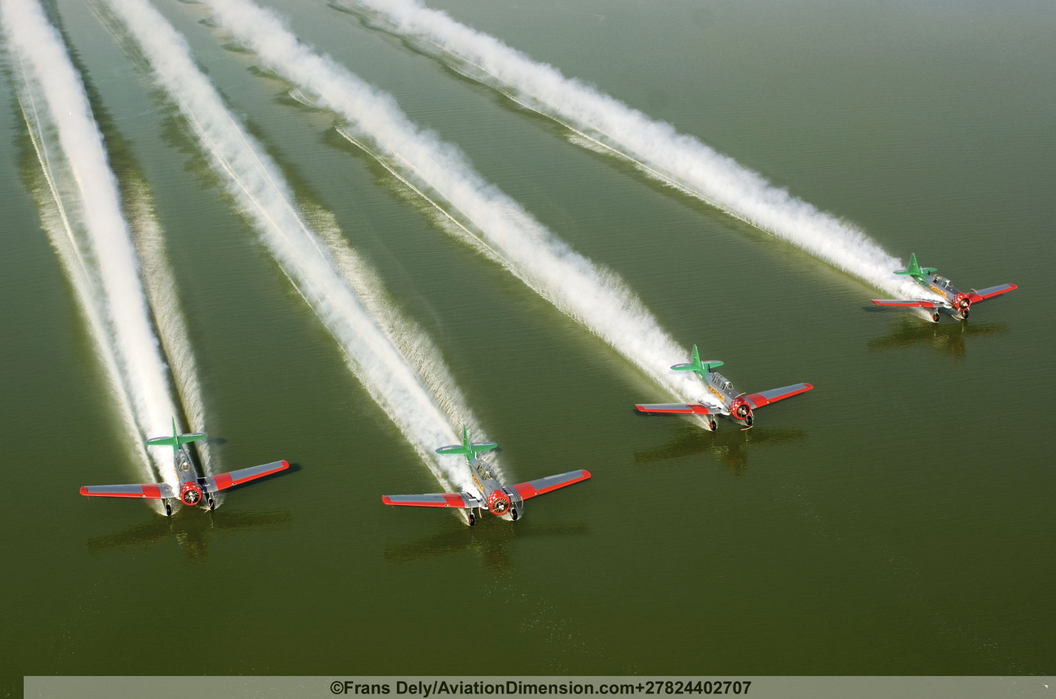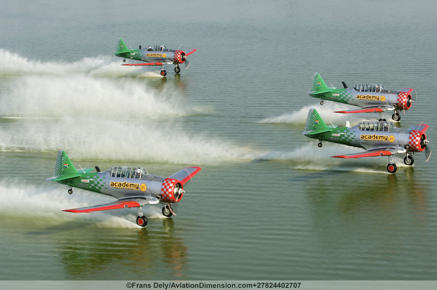 Aircraft from The Flying Lions Aerobatic Team waterskiing across the