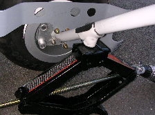 Yes, I welded a bolt at about a 45 degree angle to a cut piece of galvanized pipe, and covered it with epoxy and micro-balloons. Wrapped the inside of the pipe with a strip of inter-tube to prevent scratching and to add friction. The bolt fits in a hole drilled in the top of the scissor jack (from Kragens). Using an electric drill with a "tee" makes for easy jacking.