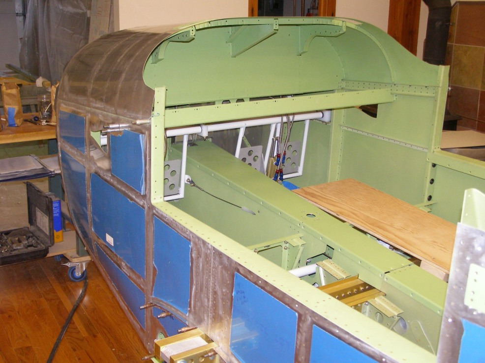 I don't remember what order it comes in the plans, but you might wish you have put on the heater boxes and the scat tube connections inside the forward tunnel before attaching the panel area. For the rest of you out there, those scat tubes can be put on (and should be put on IMHO) very early in the process, just get your brake lines in first.