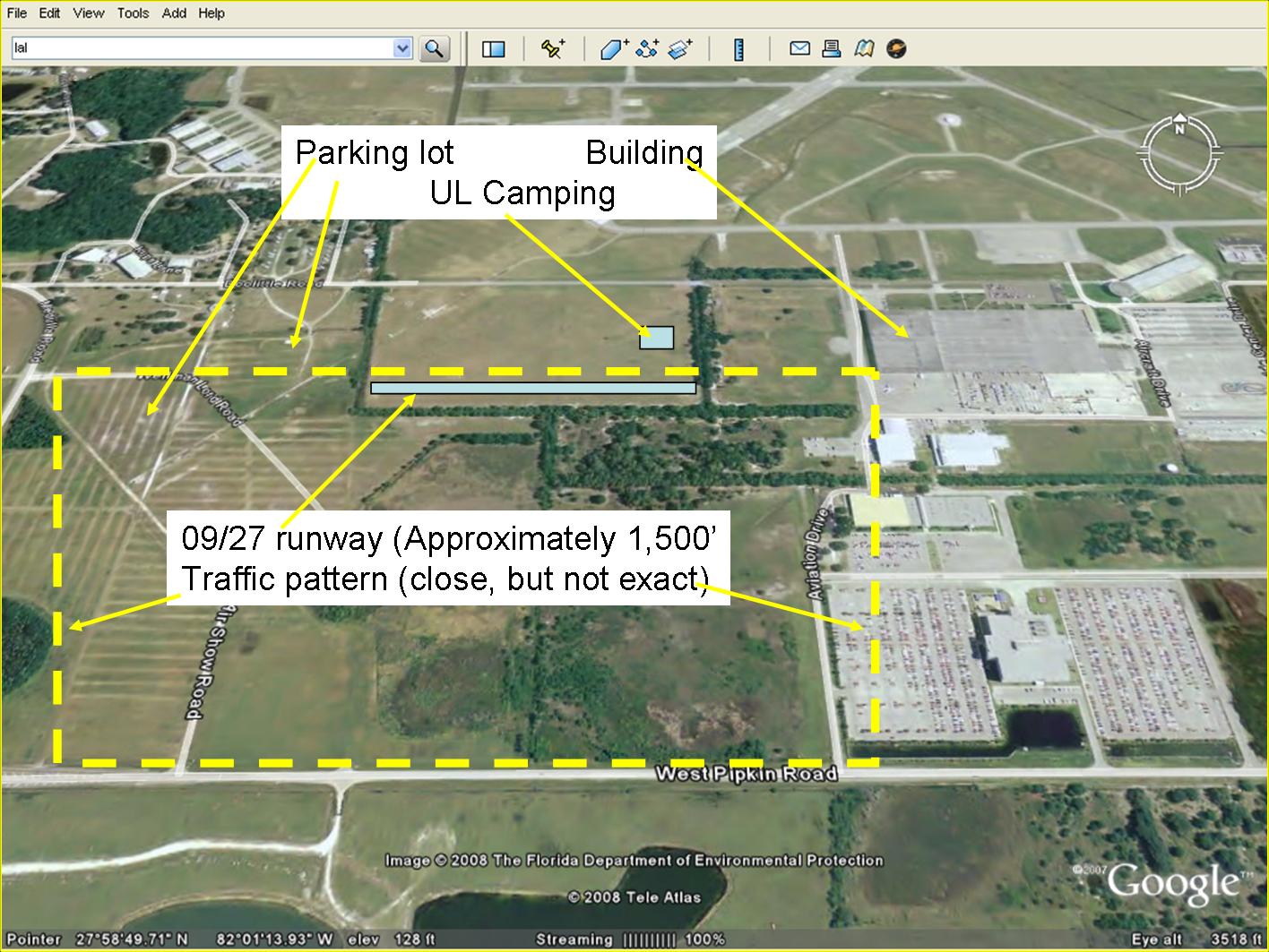 The arrival procedures for the UL leave a lot to be desired. I have attached three pictures (I put these together several years ago for some first time UL folks to SNF). I prefer to go south past LAL on the west side. All the GA folks are lining up on the northeast side. You can use South Lakeland as a guild. You need to be inbound in a north easterly direction (from the southwest). Do NOT go north of the UL area or over/east of the buildings on the east side of the UL area (you're getting into helo country). I hope the pictures help.