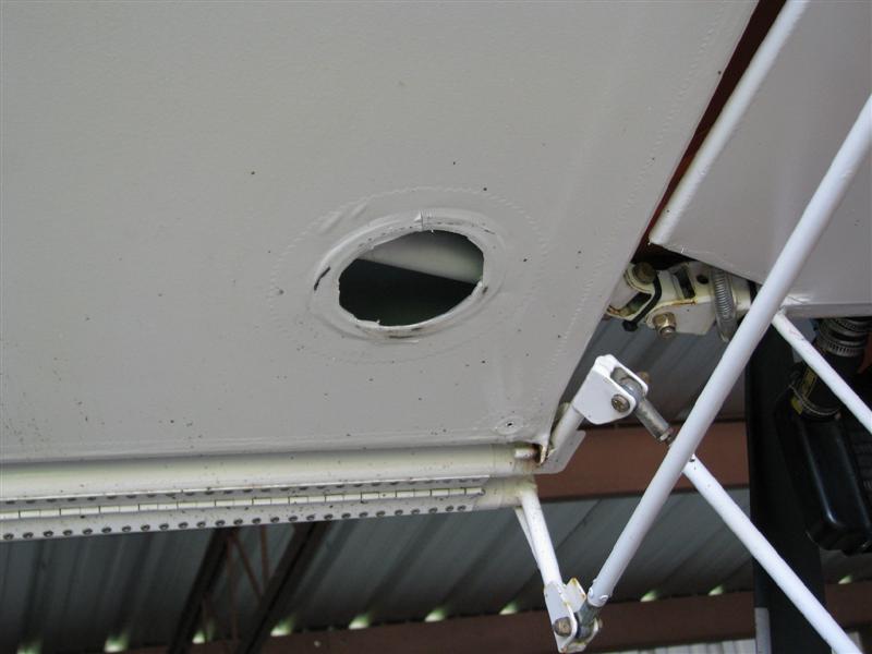 I found it when I pushed the plane back into the hangar. I installed inspection plates in the fabric at key places in the wing. One at the drag strut connection, the spar connection and at the end of the wing for inspection purposes. The inspection plate at the drag strut connection was missing.