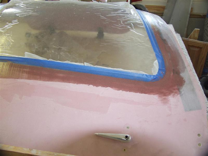 One more observation: Others have commented about the paint peeling off the windshield in rain at 200 MPH. I noticed that where I had ground out the plexi to receive the fiberglass, it bonds perfectly. But if it spilled over onto un-sanded plexi, the fiberglass would easily peel off back to where it was sanded. I imagine the primer and paint will do the same on unsanded plexi, so I have left a small margin so that I can sand the plexi up to where the paint line stops. The Weld-on actually melts into the un-sanded plexi.