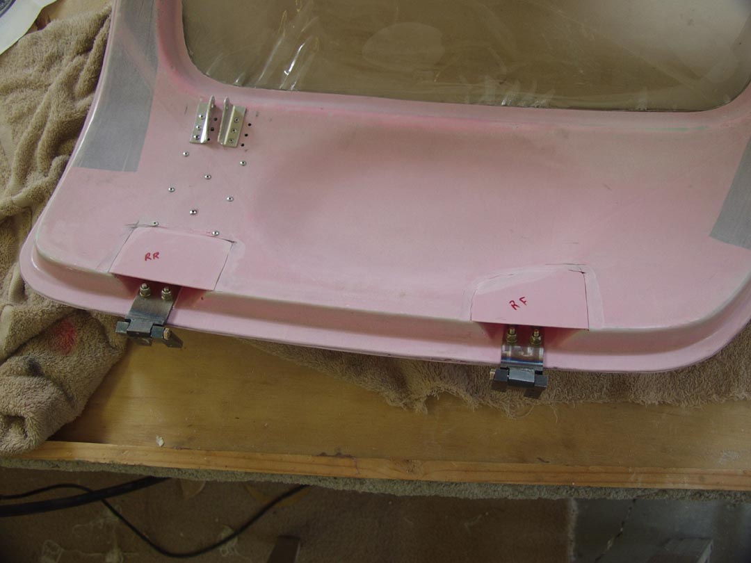 I've added the "scabs" over the door hinges for the weather seal, but didn't take a picture of it after I also covered it with cloth/glass and skimmed it.