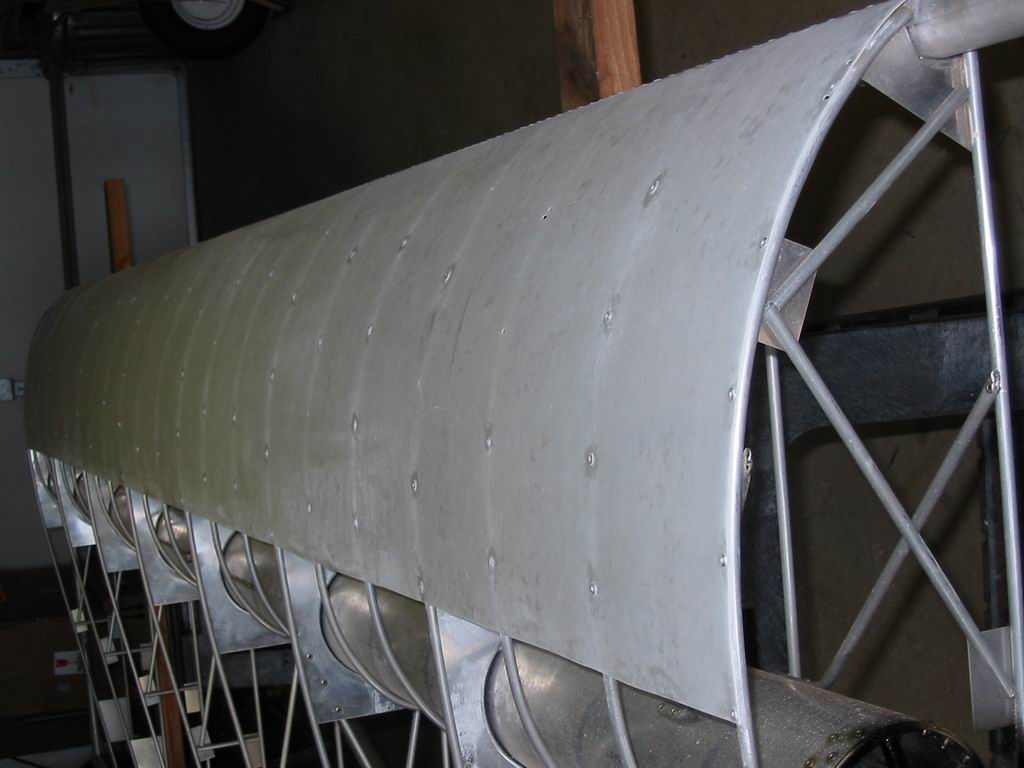 Guess you didn't read my post carefully. The fiberglass is underneath the fabric. Also, I didn't lay up the fiberglass - it is commercially laid up material. The fabric is attached as per the plans. One piece on top, and one piece on the bottom from the LE to the TE over the full length of the wing. Instead of rib stitching, the standard Kolb riveting to the ribs is used.