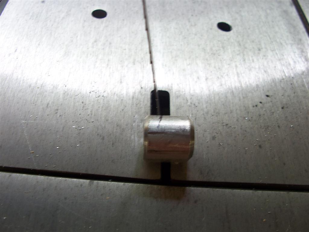 | # 7 - Preparing to cut off the top of the ferrule at the correct angle using a bandsaw (a hacksaw could also be used). |
