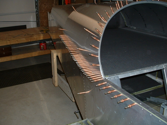 3.Work the "Bubble" out of the mid top aft to front. Drill and Cleco the center of existing holes afterwards. Pitch 20 or 30 by the time you're done doubling. Zero gap at the hoop a necessity.