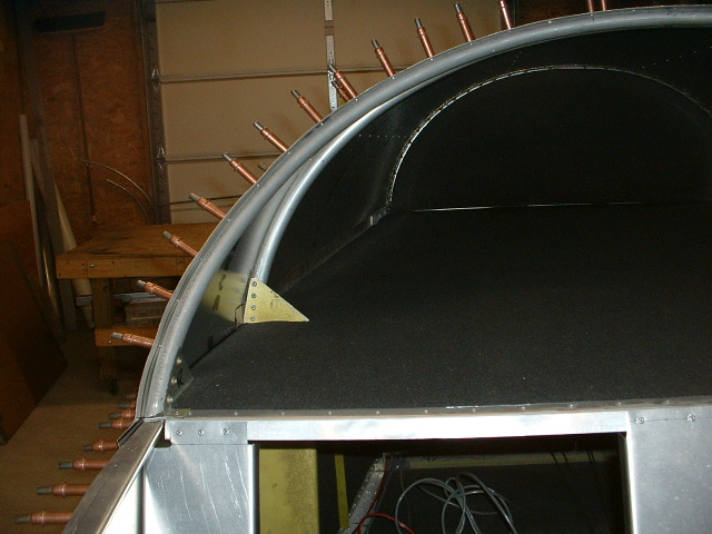 This is actually my third mid top. My original kit material was too corroded to leave on, but I used it to make a pattern, then transferred it to another piece of .016. Didn't like the way the .016 dimpled when riveted around the hoops and formers so I tore everything down and went with the .020.