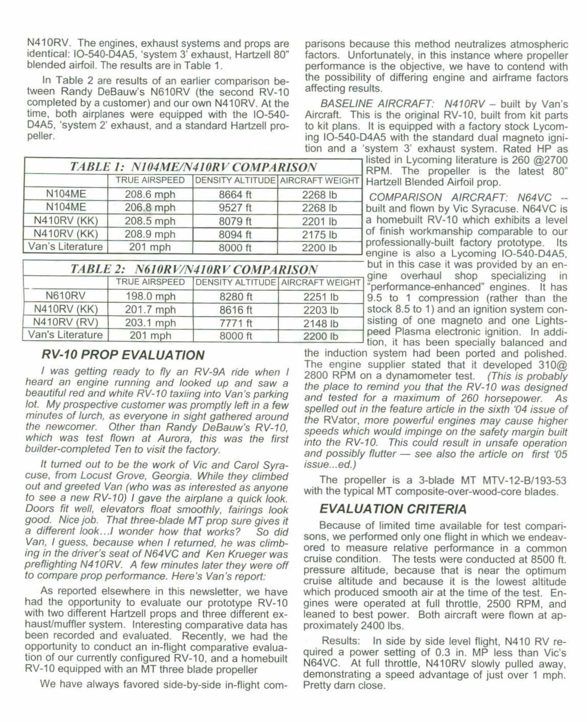 Subject: Hartzell Composite three blade test against Van's N410RV