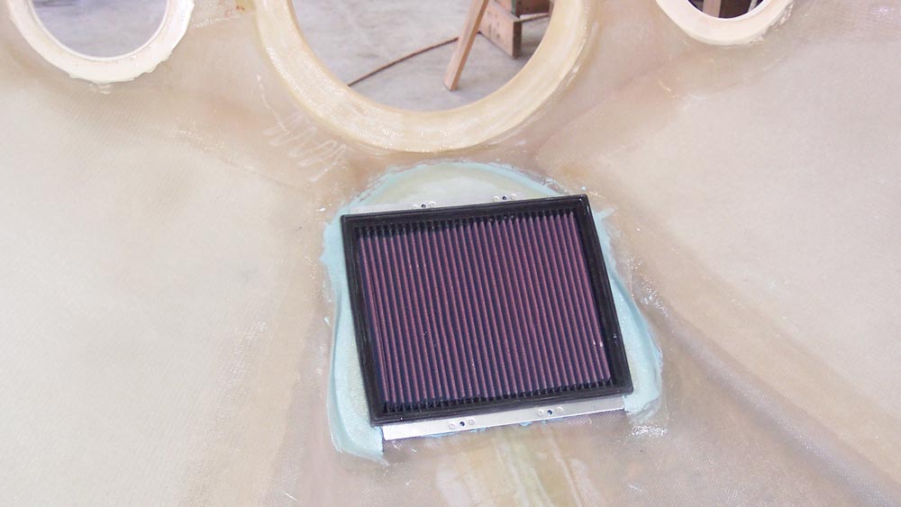 The largest challenge with the James cowl installation is the air box. We believe we have come up with a solution that is simple and straight forward. Our design is not 100% complete and I don’t have photos (yet) of the transition from the Injector body to the Air Filter but I should have them soon. Attached are photos of the forward portion of the air box / filter mounted to the cowl very close to the air inlet. The angle of the filter allows us to drop the lower cowl away from the portion of the air box attached to the injector body. Note that the injector body is less than 3” away from the filter. If anyone saw the Bower unit there is no way it would come close to fitting in this space.