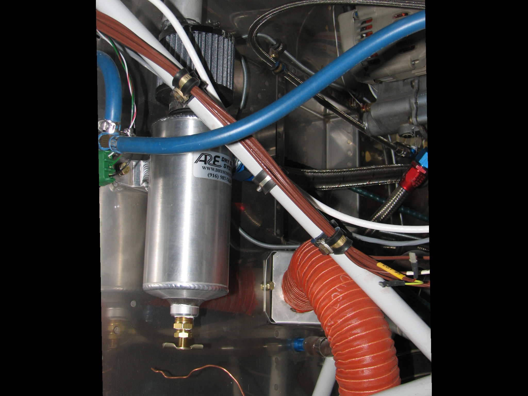Sheril & I spoke extensively with Rod (amazing builder) before & during OSH this year and there is NO good news. There is absolutely no way that Rod's unit will work with the James cowl and the BPE Cold Induction. The space between the standard “Smile” air inlet and the injector body is just too short. The angles are all wrong and the spun canister conflicts in a major way with components on the underside of the engine and the lower cowl. A major modification to the James cowl much like Deems did would be required. Our goal was to leave the “Smile” air inlet shape unaltered.