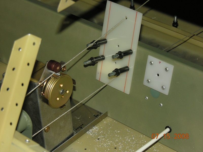 I spent considerable time installing the Tru Trak servos in my XL. It seems that the rudder cables were located differently in rev 1 drawings and the pitch servo fits with the cables that position. In rev 2 and rev 3 drawings the rudder cables were moved (I believe to reduce cable interference with each other) and the pitch servo does not fit. I originally installed the cables as per rev 3 drawing. To make the servo work I moved them back to the original position and then installed several extra fairleads to make sure to make sure the cables do not interfere with each other. Everything seems to fit now. Here are some photos of what I did.