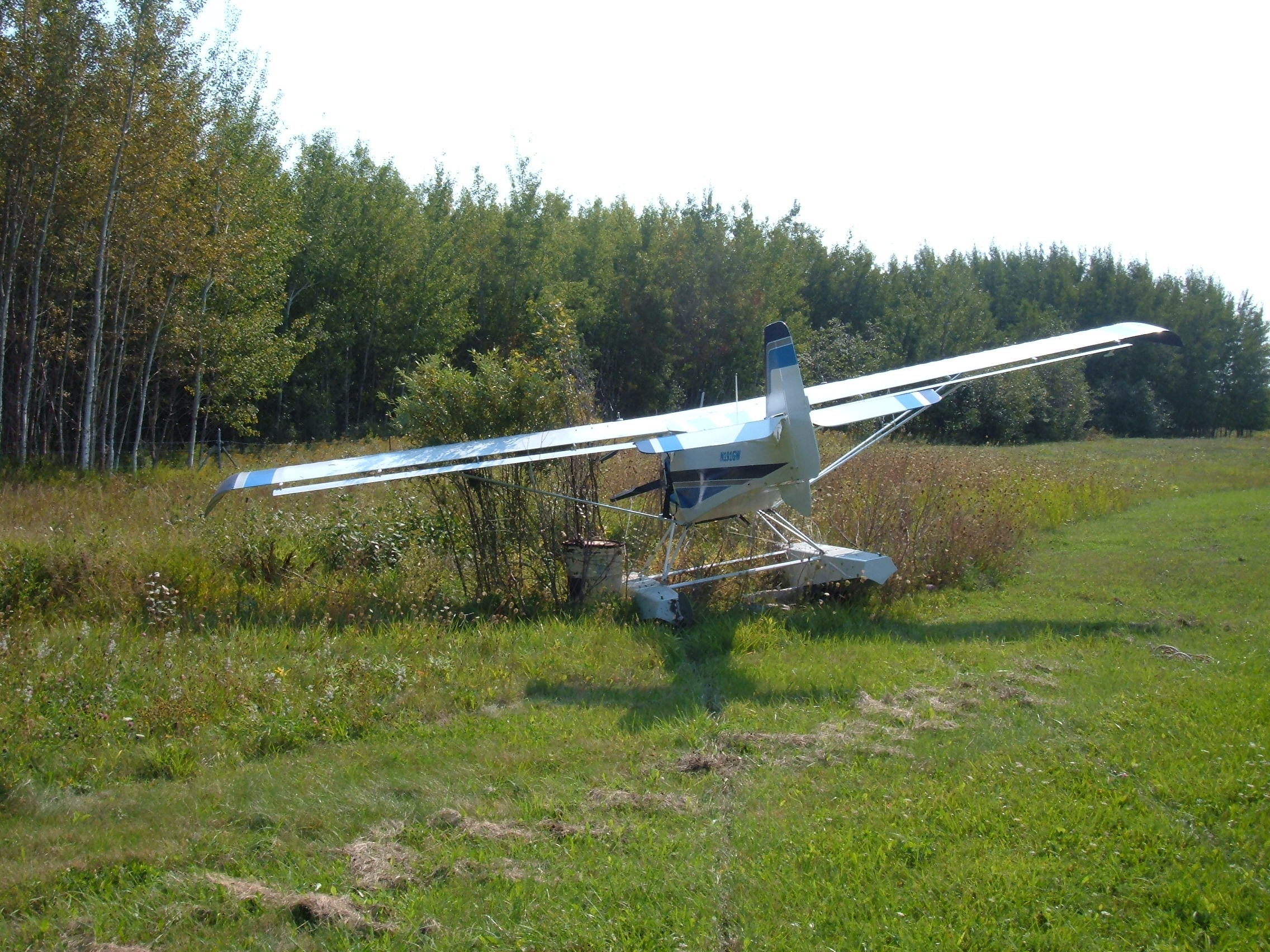 As I touched down on the runway, the thing started to veer off to the left and I couldn't do anything about it. The plane slide on the grass and finally stopped in some bushes.