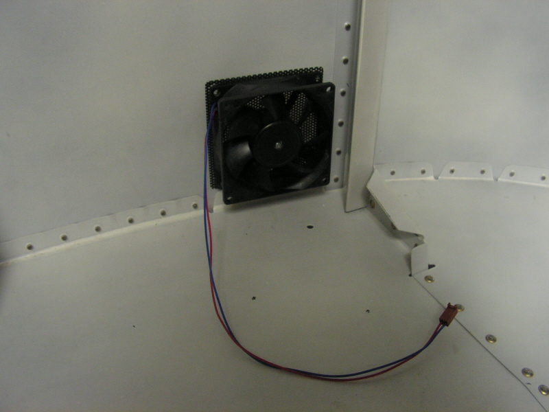 You can also just drill a little grid of small holes and no cage is needed. Just screw the fan on underneath the glareshield (screws going in from on top).