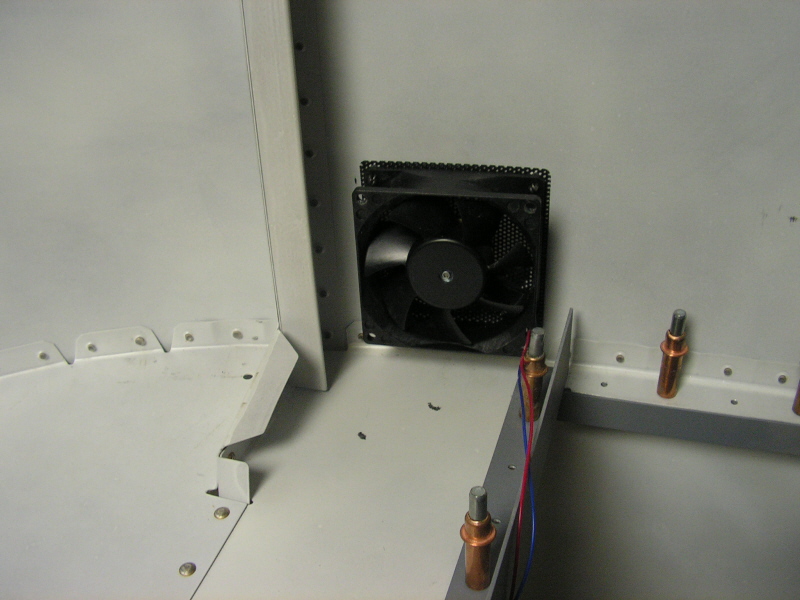 7) Cut the holes and install two fans (even though all the heat is biased to one side)