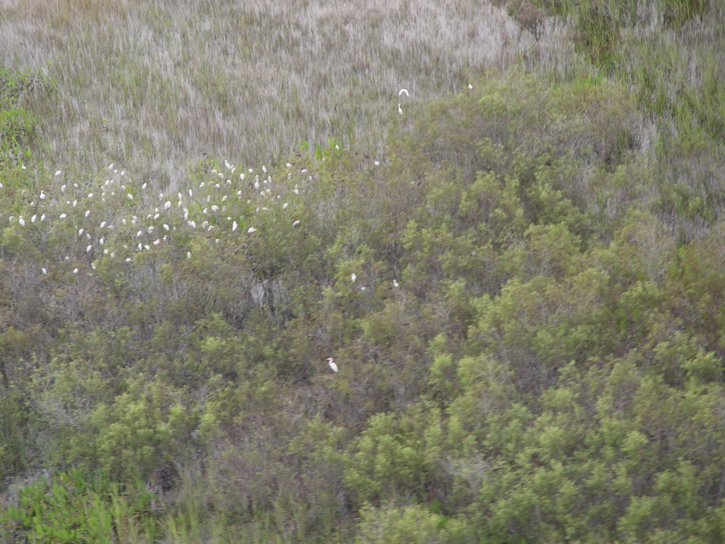 | A bunch of birds in the trees staaying out of reach of the alligators ! |