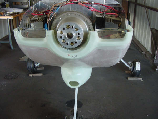 lower cowling off. Using the spinner as the reference I marked the cowling with Sharpie to lay out the correct position. Some folks want to make the circle a bit high on the cowling to allow for engine sag (1/8 to 1/4 inch is common) later on.