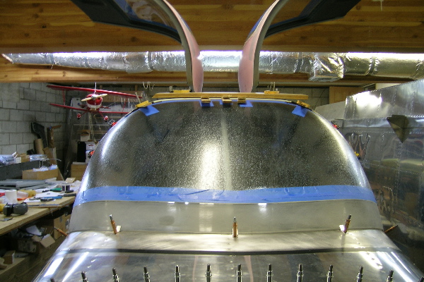 My windscreen faring is about 1.25" taller in both dimensions than plans build...by accident. Hopefully with the number of laminations and the greater coverage C mine will not separate. Notice there is a foam core buildup followed by two more layers of 9.0oz satin weave...no wonder I have so many hours into the project and I still don't have the engine mounted.